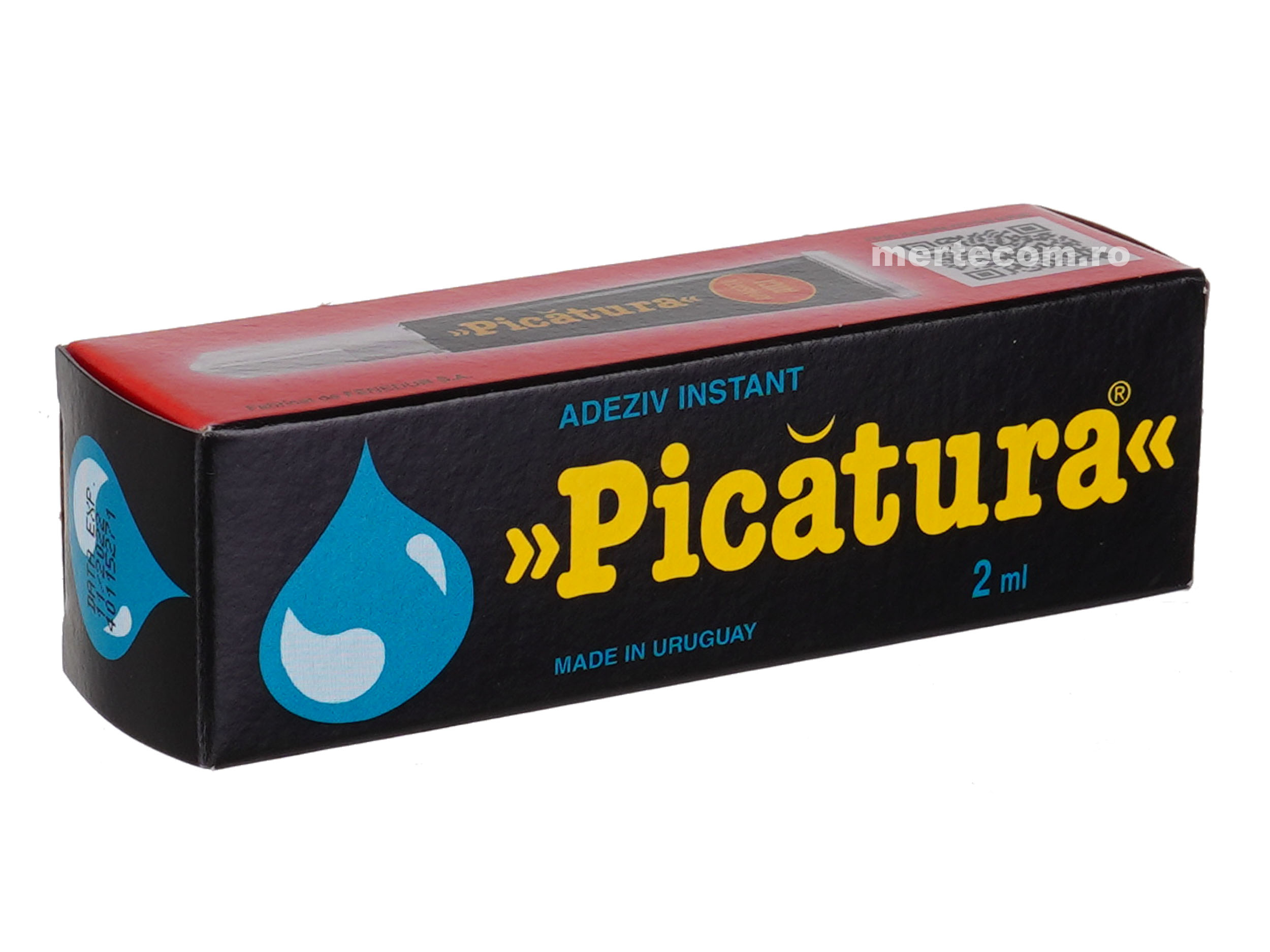 Picatura 2 ml este un adeziv instant transparent pe baza de cianoacrilat, usor de folosit, destinat micilor reparatii in gospodarie. Acest tip de adeziv lipeste practic orice tip de material in doar cateva secunde si se utilizeaza pentru realizarea de reparatii in casa, activitati de hobby si pentru lucrari practice in general.